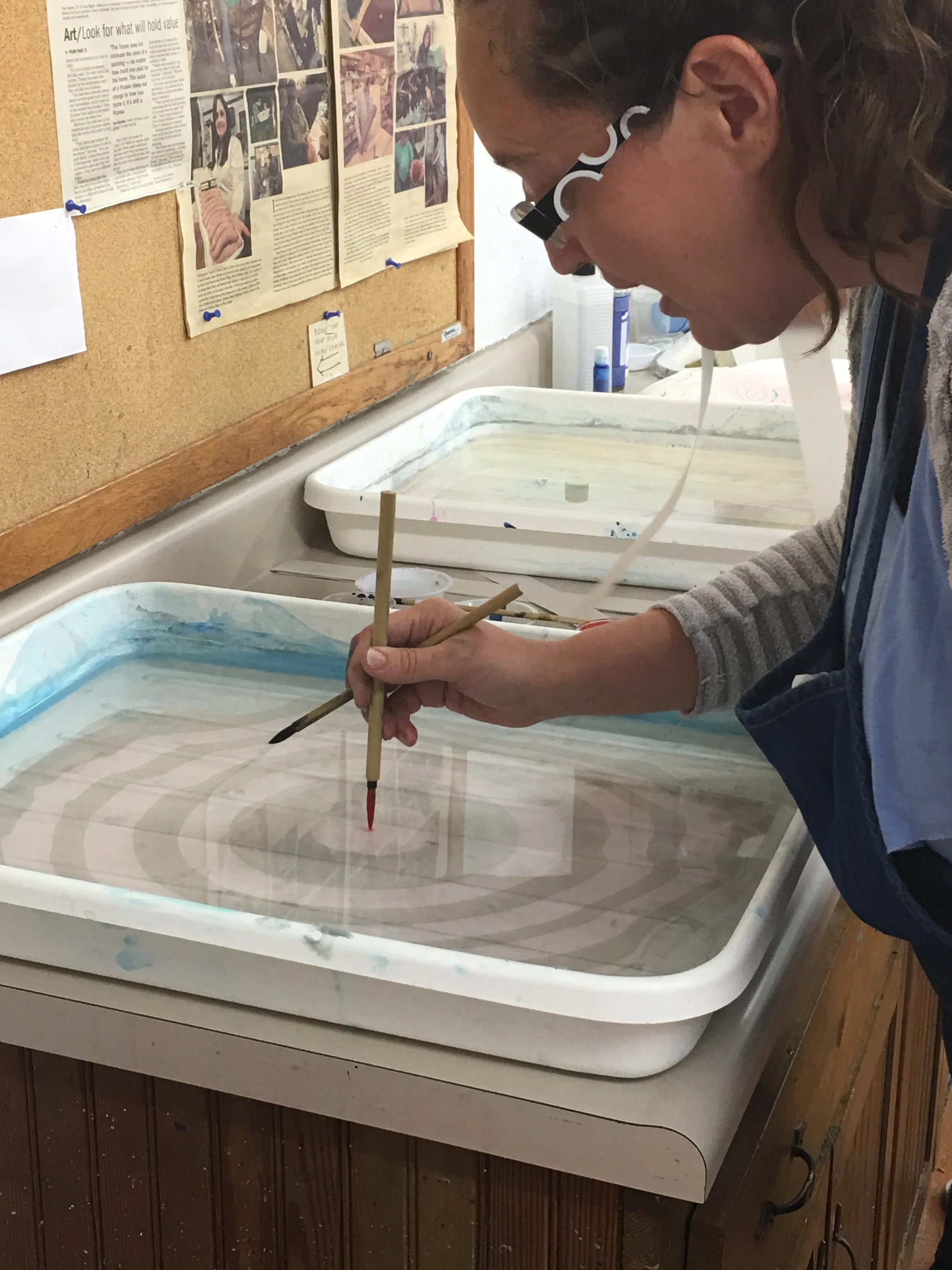 Participants explored the fundamentals of Suminagashi paper marbling, including materials selection, vat preparation, and image-making techniques. Prints were then incorporated into traditional Japanese book structures. Special thanks to the talented Karen Carcia for co-teaching this amazing workshop!